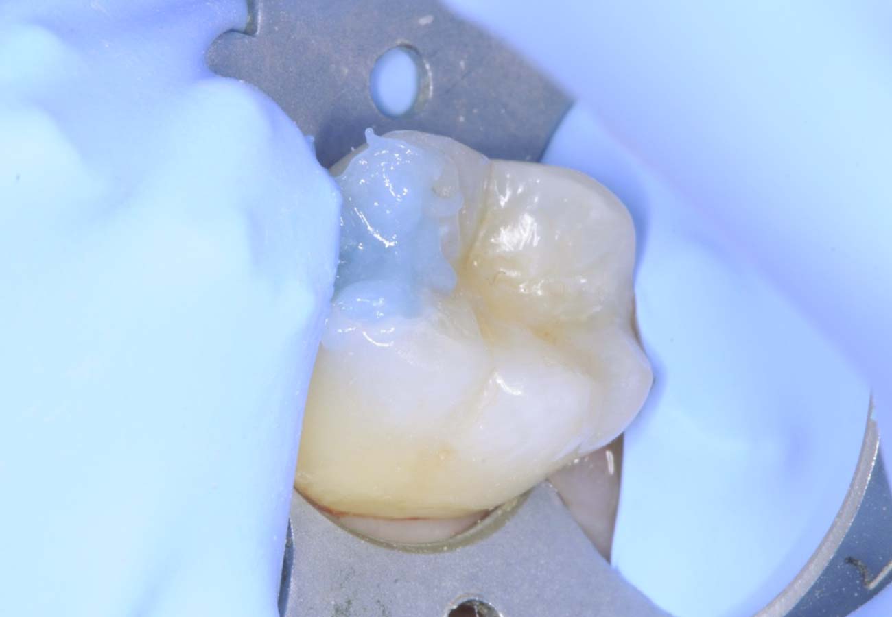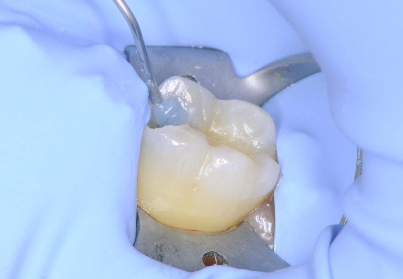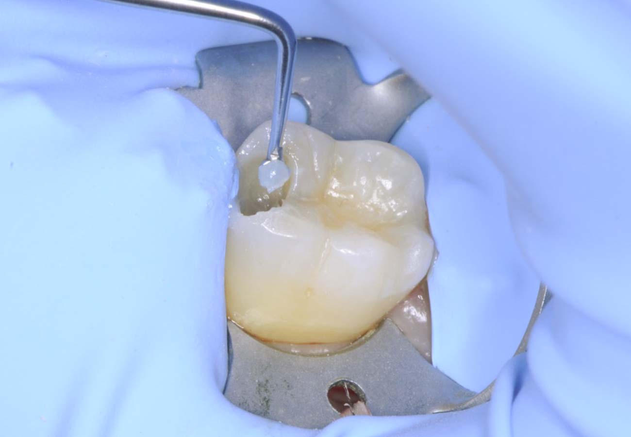 Yes. Softened, cloudy gel and the absence of further soft dentin on probing indicate completion.Oui. L’aspect trouble du gel ramolli et l’absence de dentine molle au sondage indiquent la fin du processus.